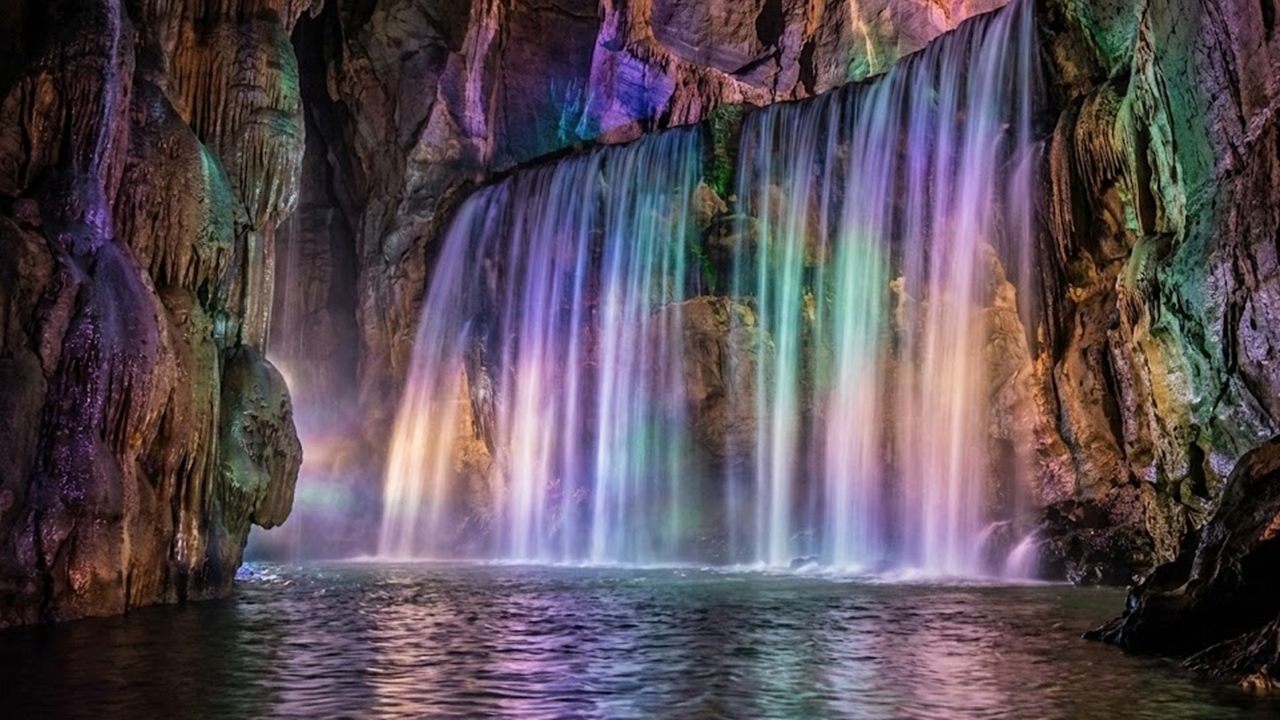 As cores deslumbrantes que iluminam as paredes rochosas são resultado de uma combinação entre a iluminação artificial estratégica e a presença de micróbios luminescentes naturais. Quando a luz atinge as formações cársticas, as rochas brilham de forma a simular o aspecto visual da Via Láctea, criando uma atmosfera espacial.