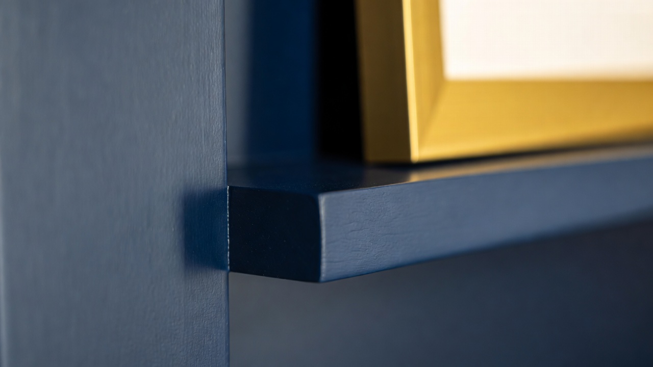 | Azul Marinho Profundo Escuro | Molduras douradas brilhantes e objetos de cobre |