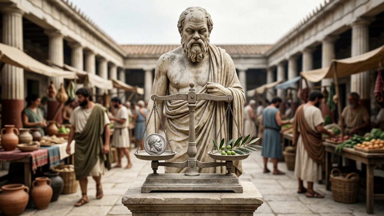 O critério socrático não é a utilidade imediata do outro, mas a constância do caráter ao longo do tempo. Em Platão (Fédon), Sócrates compara a sabedoria à única moeda verdadeira pela qual tudo deve ser trocado, reforçando que a metáfora monetária era recorrente em seu pensamento.