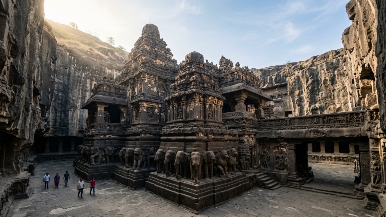 Visitar o Kailasa Temple é uma experiência que humilha a engenharia moderna. A magnitude das galerias esculpidas, das varandas com colunas perfeitas e dos santuários ocultos na pedra escura cria uma atmosfera de devoção espiritual e assombro técnico.