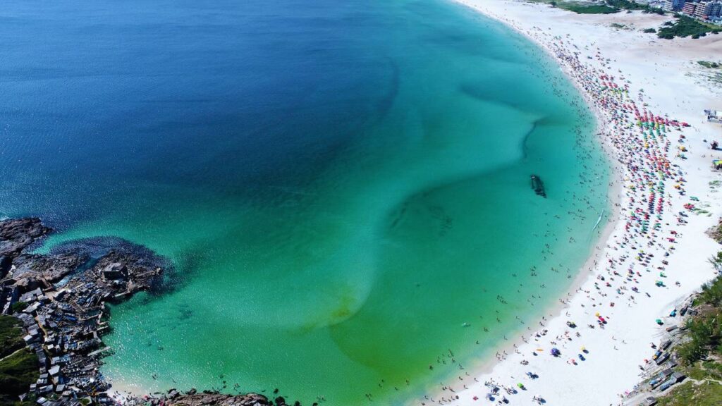 Vista aérea de um mar paradisíaco com águas cristalinas. Praia Longa, Arraial do Cabo, Rio de Janeiro, Brasil – Créditos: depositphotos.com / Cristian_Lourenco
