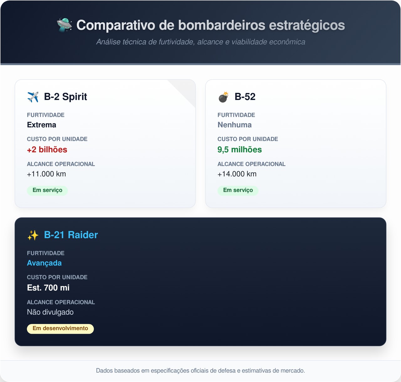 Essa combinação de furtividade e alcance global é única entre os bombardeiros estratégicos em operação no mundo hoje.